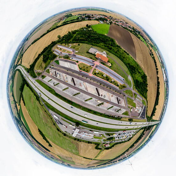 Der erste Flug fand östlich der Tankstelle statt, der zweite ca. in der Mitte der Parkflächen. Ziel war das Festhalten des Bautenstands der Sanierungsmaßnahmen zu diesem Zeitpunkt. Kurz nach den Flügen wurde die Raststätte zwischenzeitlich für den Verkehr am Wochenende freigegeben.