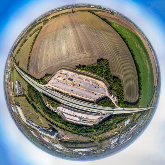 Inventurflug oder auch Bautenstandsfeststellung im Auftrage der Bauüberwachung. Die PWC-Anlage wird zur Gewinnung von Lkw-Stellplätzen großräumig umgebaut.