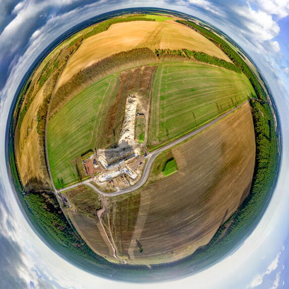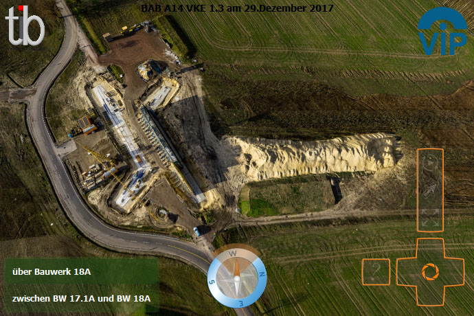 Zu sehen ist das nördliche Drittel der Verkehrseineit 1.3. In Bau ist die Brücke Bauwerk 14A, die künftig die K1178 nach Cröchern über die A14 führt.