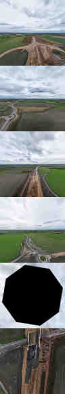 Ziel ist die Generierung eines 360°Bildes in form einer äquirectangularen Projektion bzw. "Plattkarte, equirectangulare Projektion"