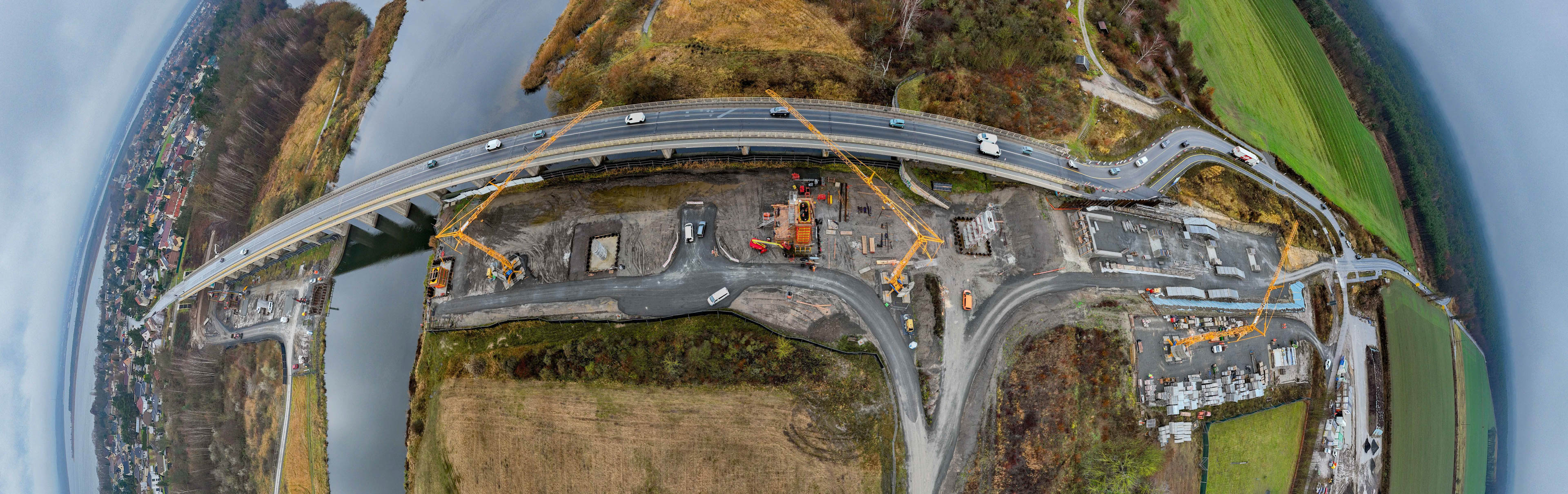 Am 10.Dezember 2025 beflogen wir das Baufeld des Ersatzneubaus der Brücke über die Mulde im Zuge der B100 zum zweiten Mal.