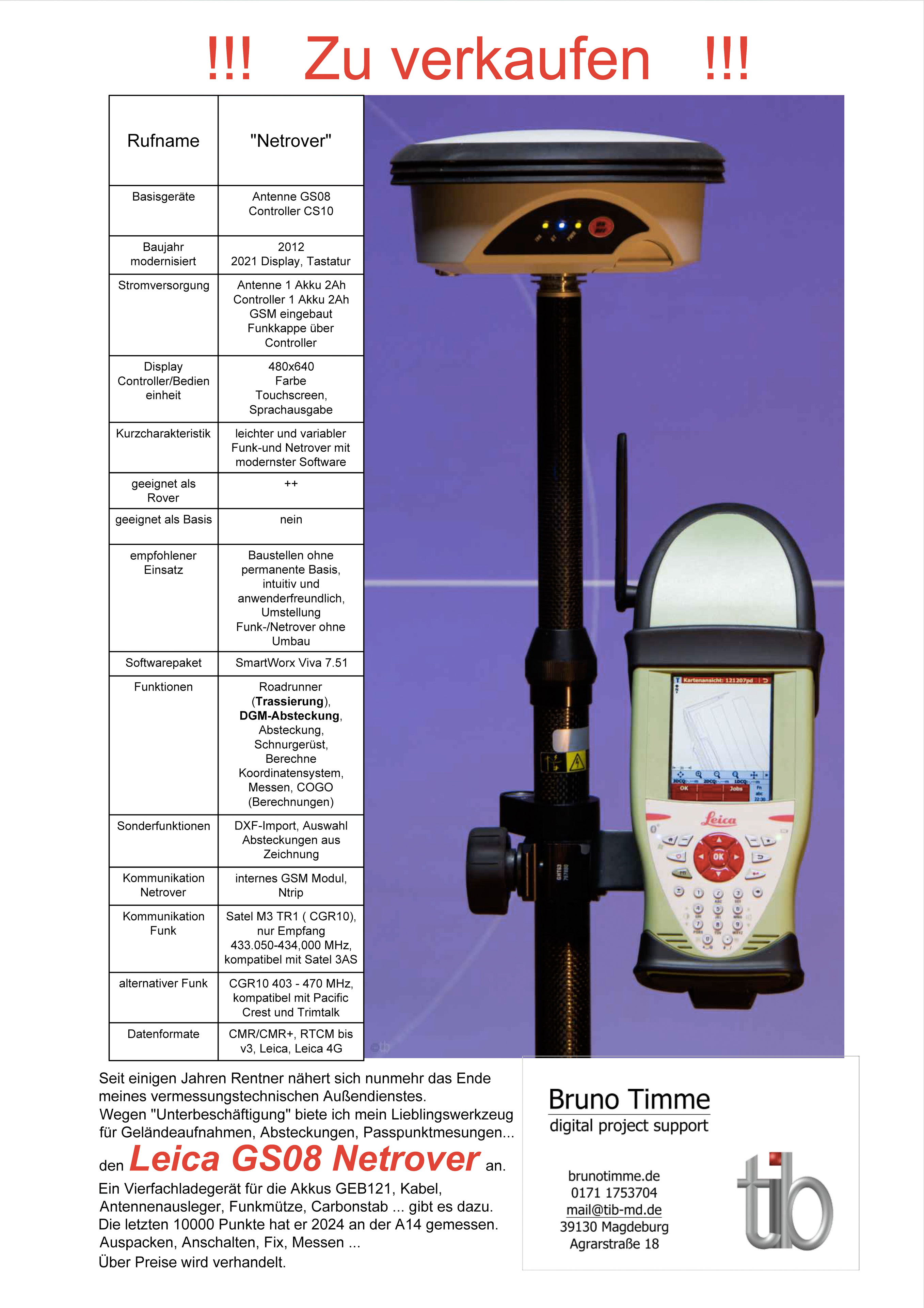 2024 noch >10000 Punkte u.a. an der A14 Nord gemessen, stehen zurzeit keine Aufträge für den Netrover an. Und da mein zwar immer gern gemachter vermessungstechnischer Außendienst in den vergangenen Jahren ohnehin nicht im Vordergrund stand, ziehe ich jetzt die Konsequenzen.