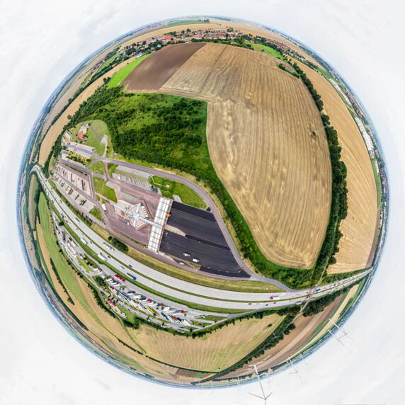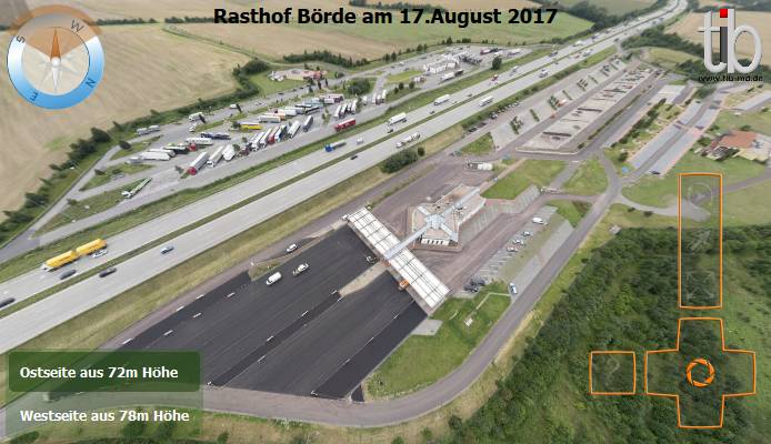 Der erste Flug fand östlich der Tankstelle statt, der zweite ca. in der Mitte der Parkflächen. Ziel war das Festhalten des Bautenstands der Sanierungsmaßnahmen zu diesem Zeitpunkt. Kurz nach den Flügen wurde die Raststätte zwischenzeitlich für den Verkehr am Wochenende freigegeben.