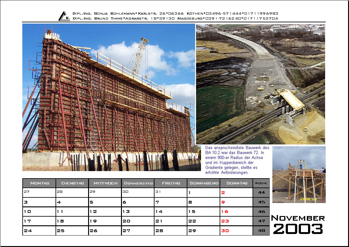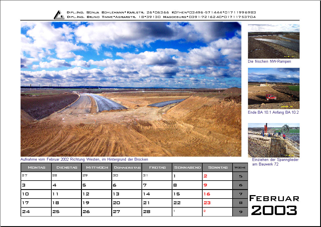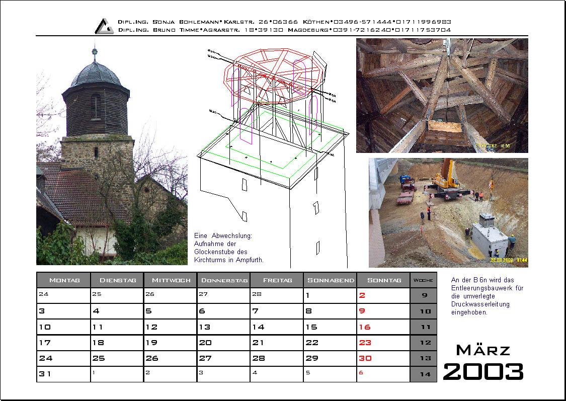 Wandkalender 2003 der SGNT "Bautagebuch"