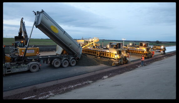 Seit 20.10.2025 läuft der Einbau von Waschbeton auf Teilen der A14 zwischen AS Lüderitz und AS Stendal.
