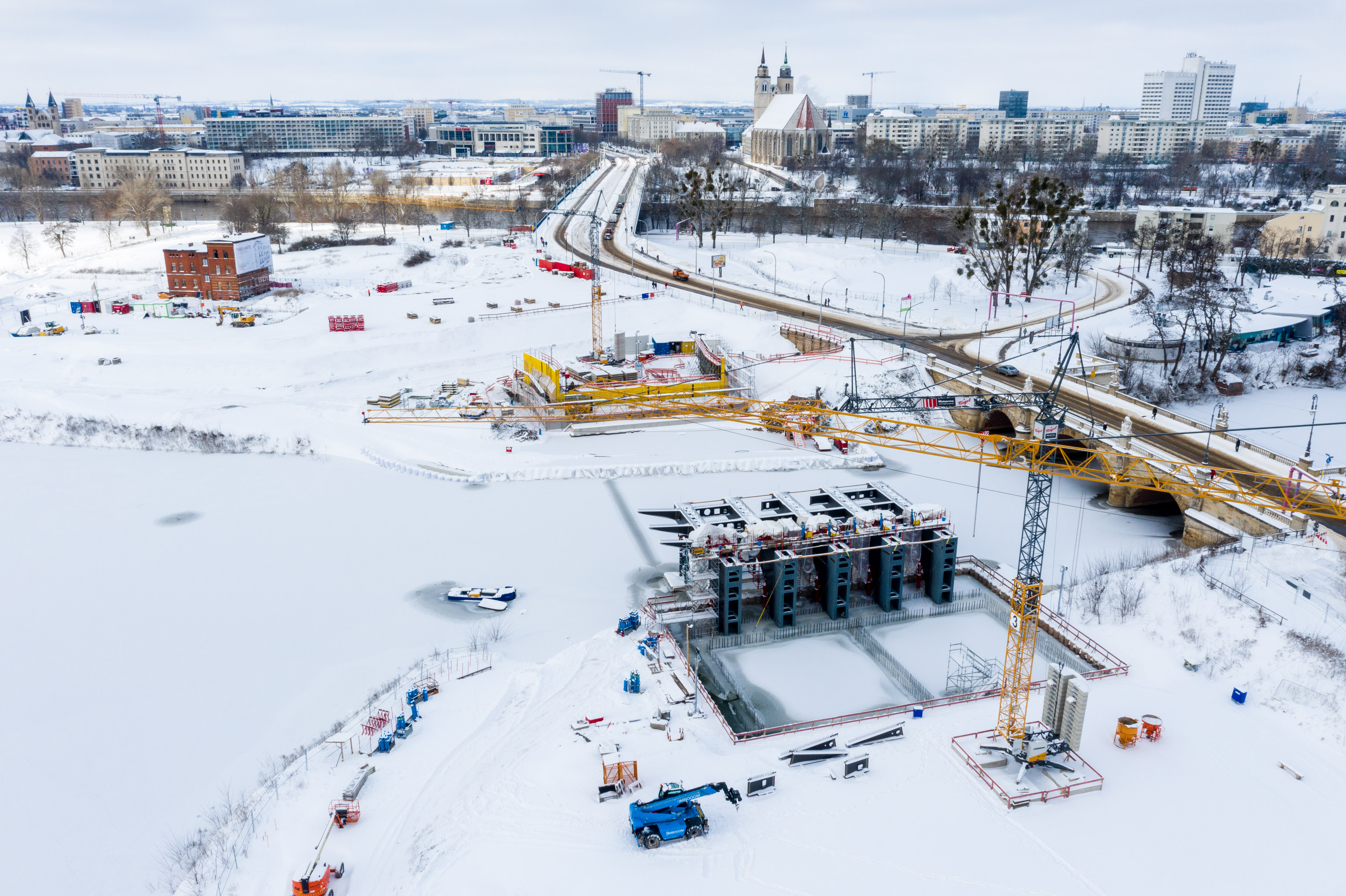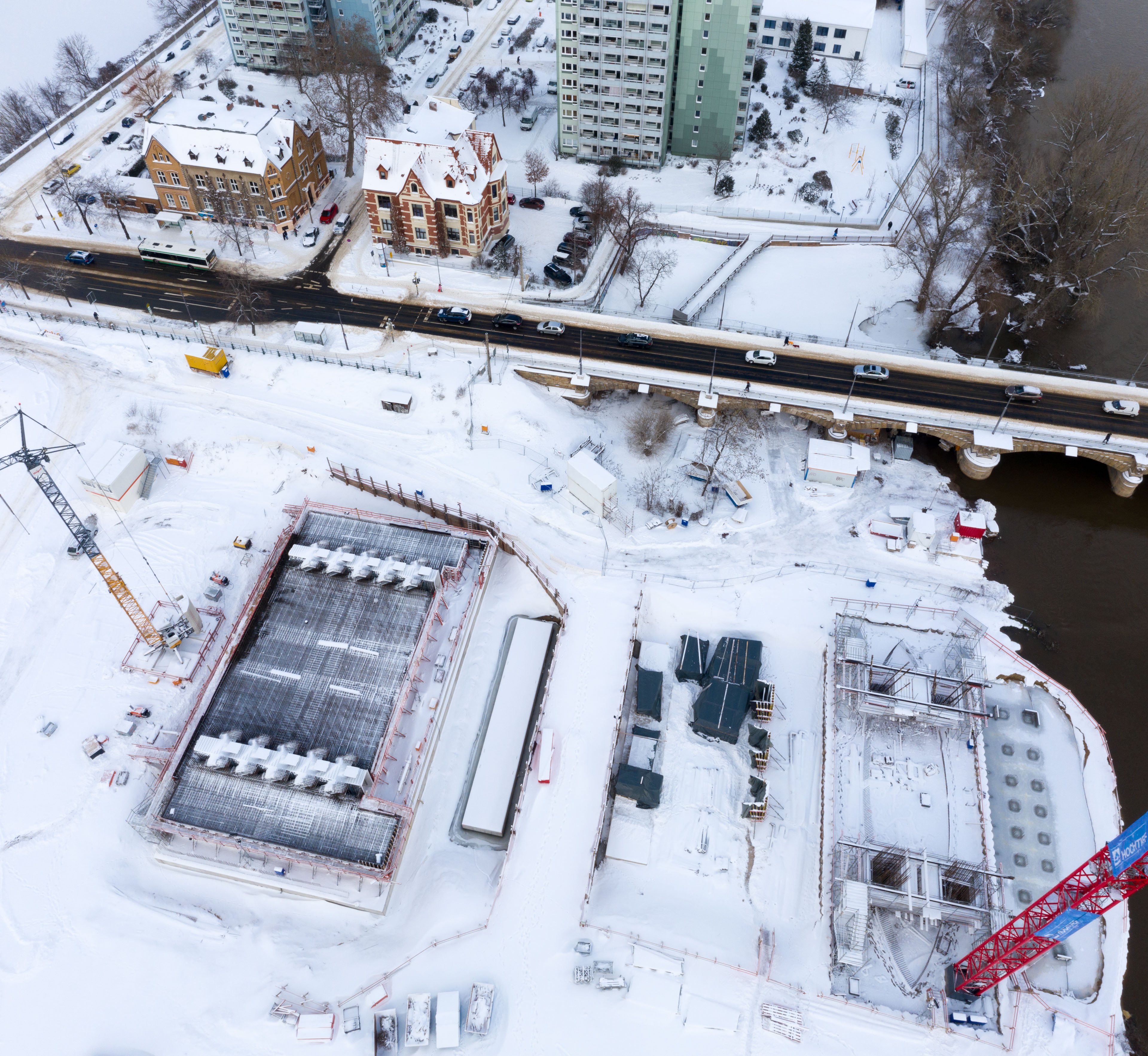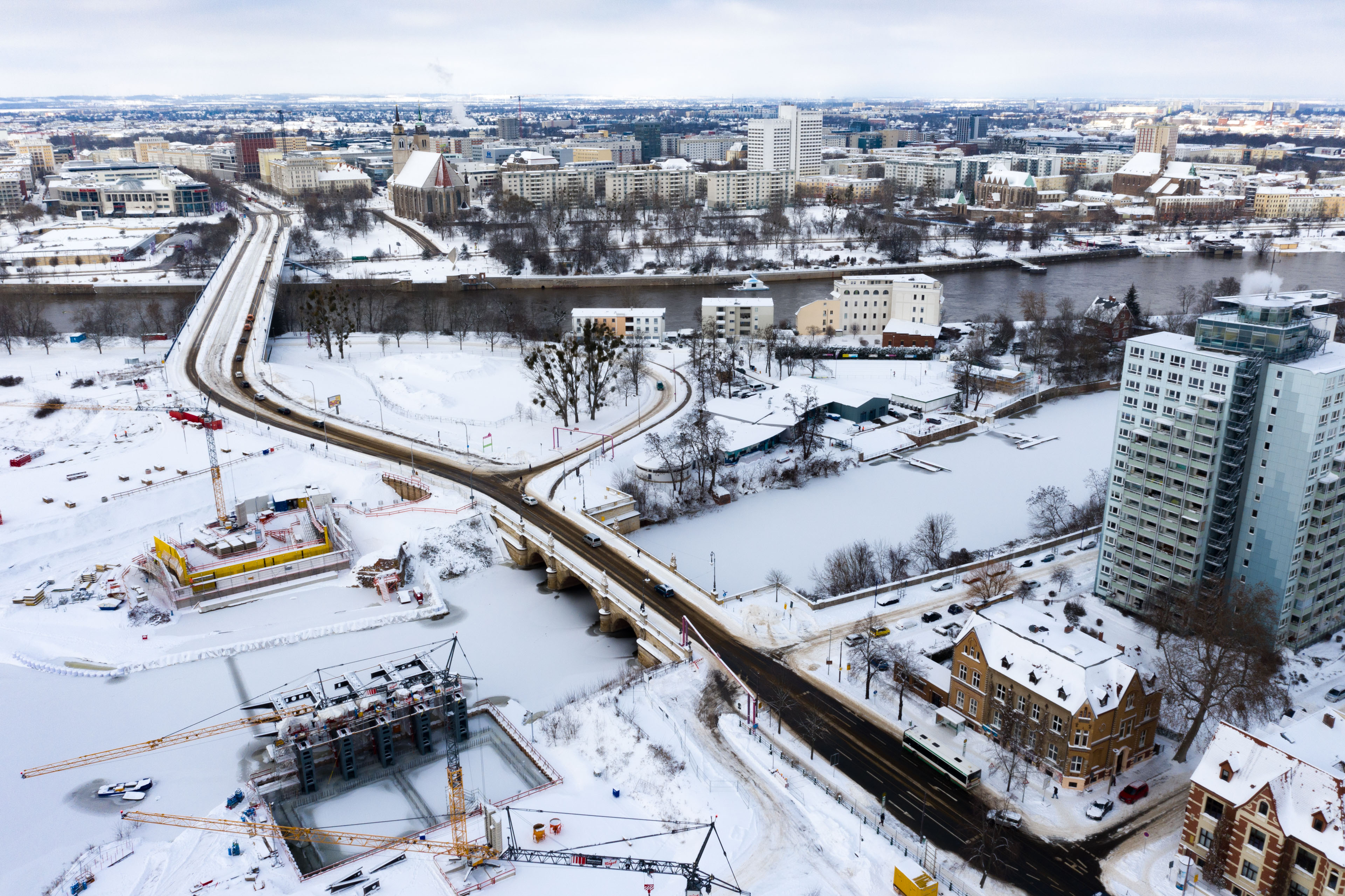 Die ersten Flüge für die Landeshauptstadt Magdeburg über dem Baufeld des City-Tunnels führte ich ab Februar 2018 als Punktflüge aus.