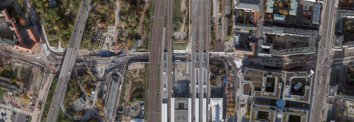 Für den Ersatzneubau Strombrückenzug bin ich seit 2015 mehrfach sporadisch geflogen. Seit März 2020 verlängert GeoFly seine Flüge über den City-Tunnel bis zum Baufeld des Ersatzneubaus Strombrückenzug.
